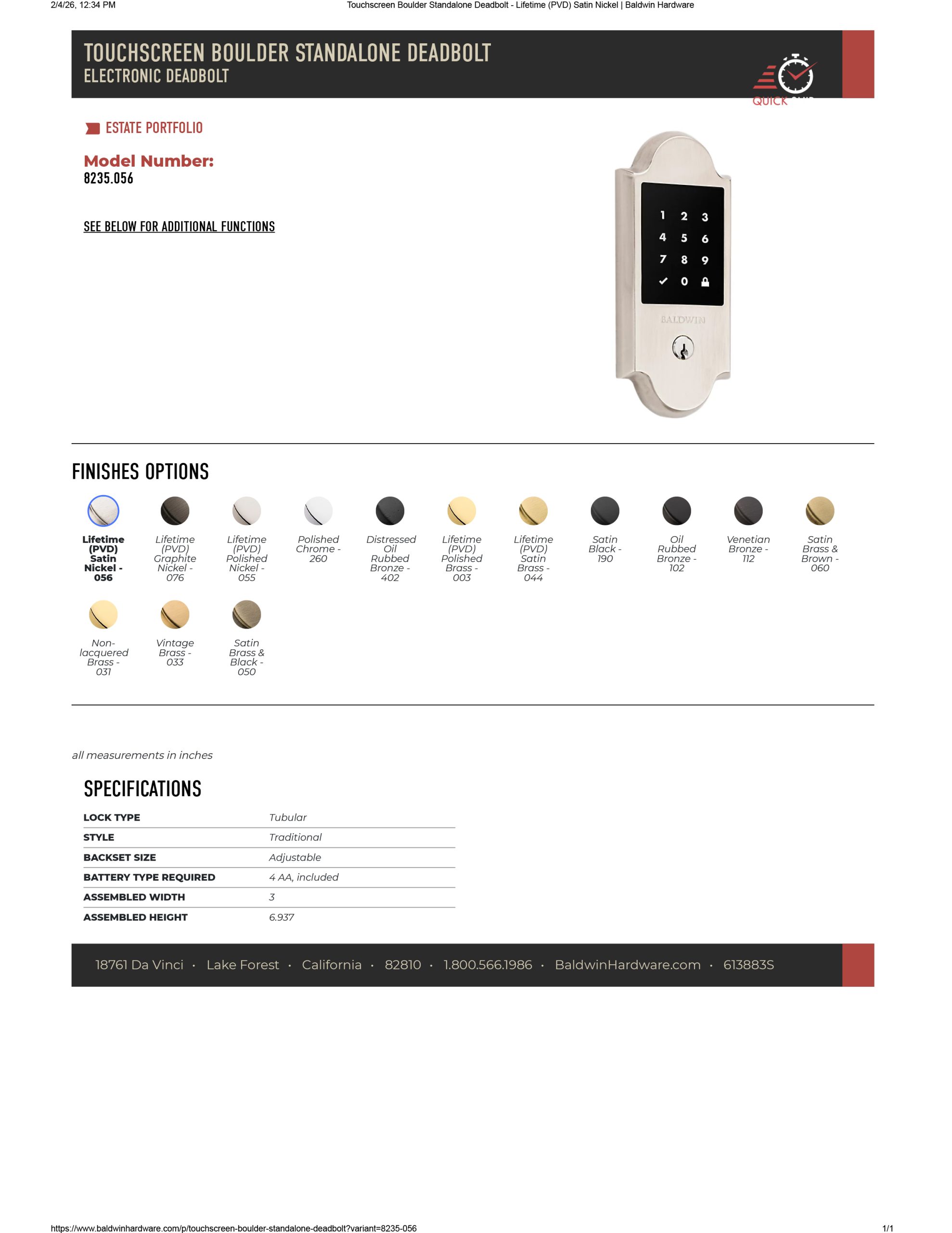 Baldwin 8235 Boulder Touchscreen Deadbolt
