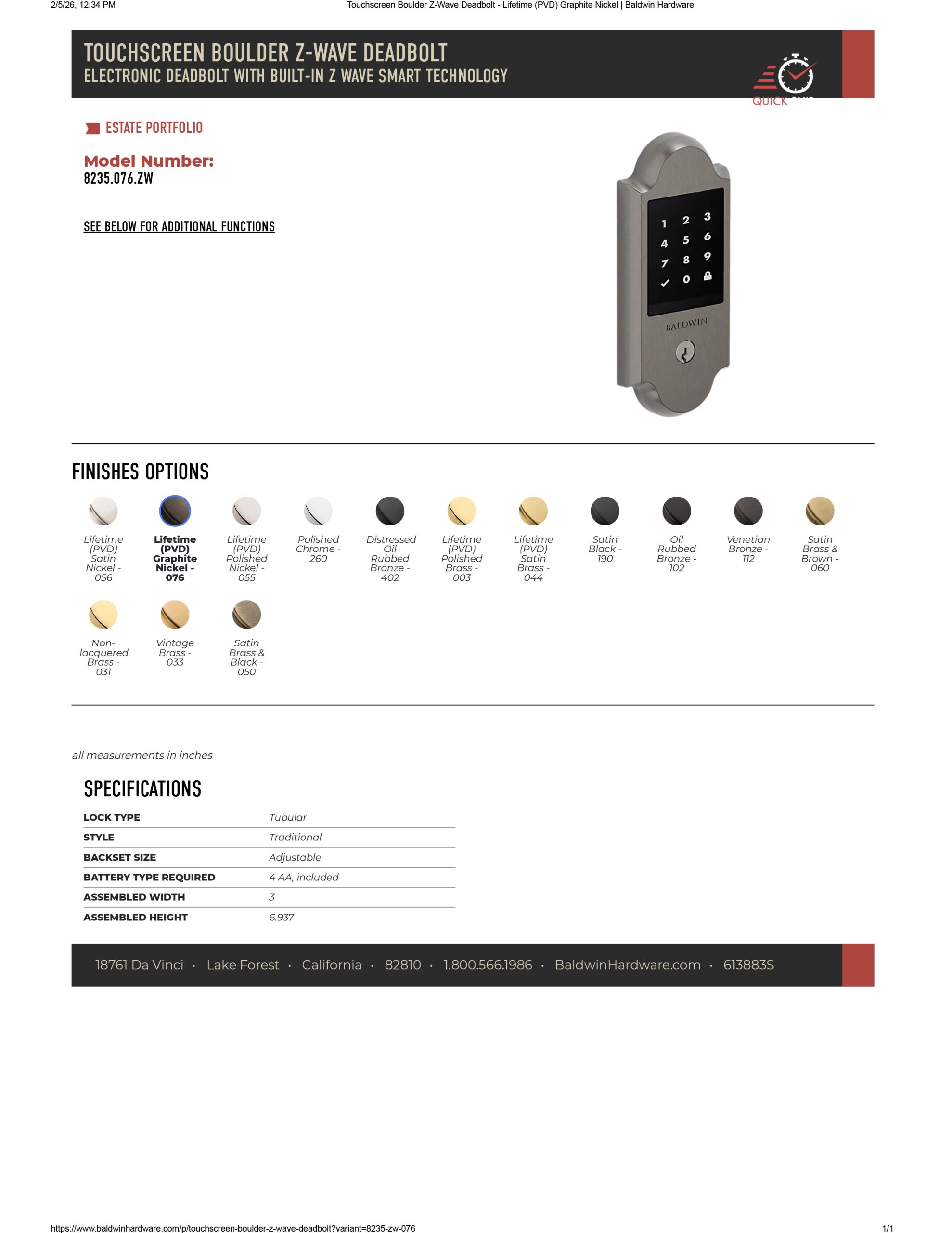 Baldwin 8235 Boulder Touchscreen Z-Wave Smart Electronic Deadbolt – ESTATE PORTFOLIO