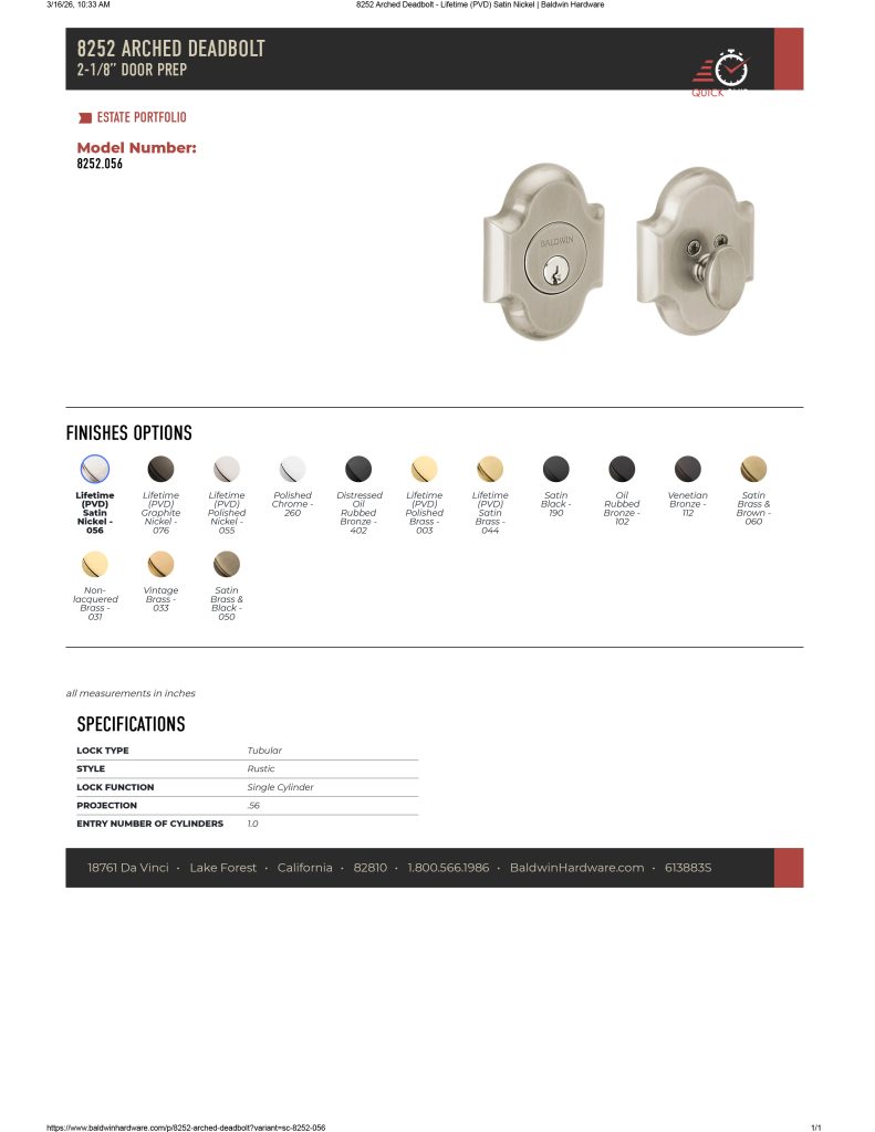 Baldwin Estate 8252 Single Cylinder Arched Deadbolt