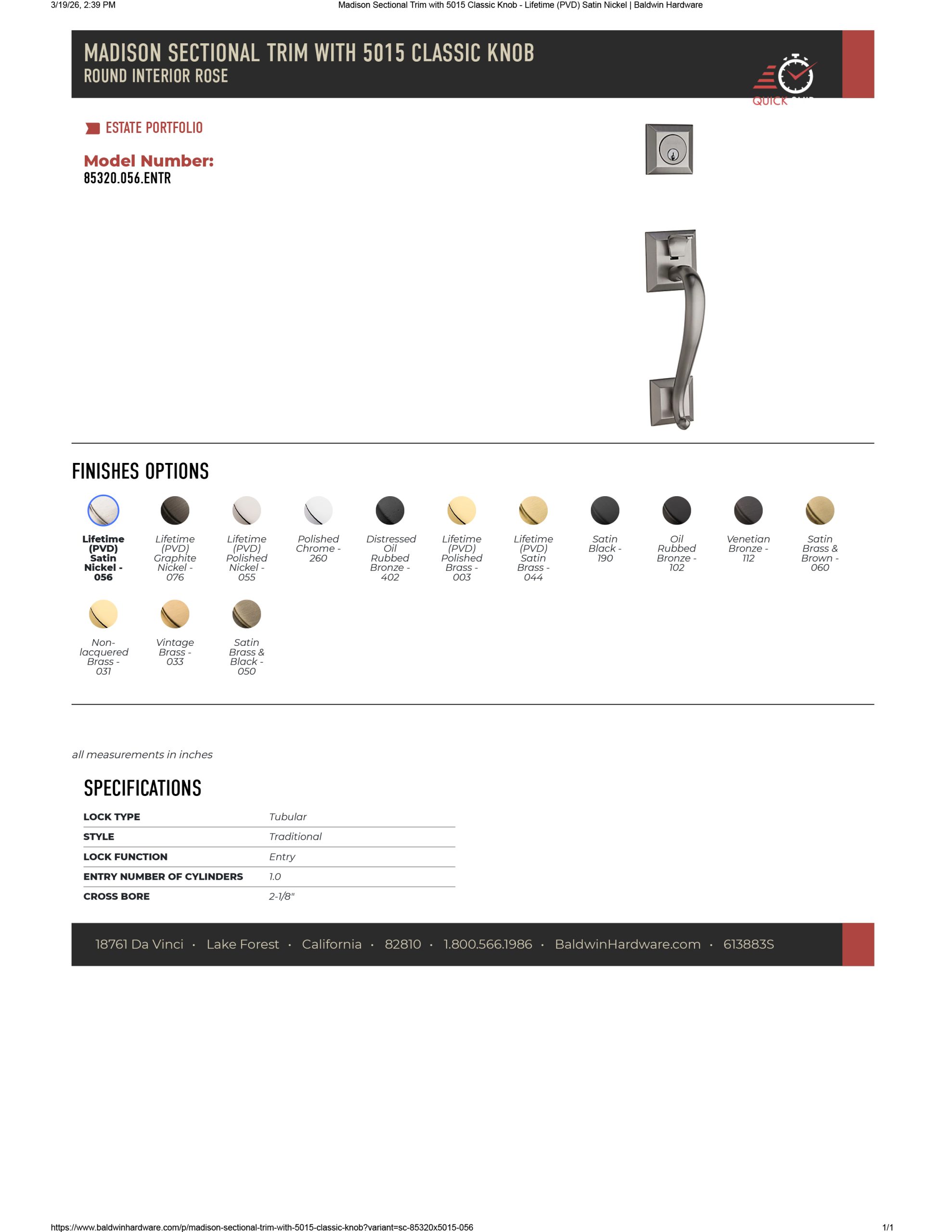 Baldwin Estate 85320 Madison Entrance Set With 5015 Classic Interior Knob