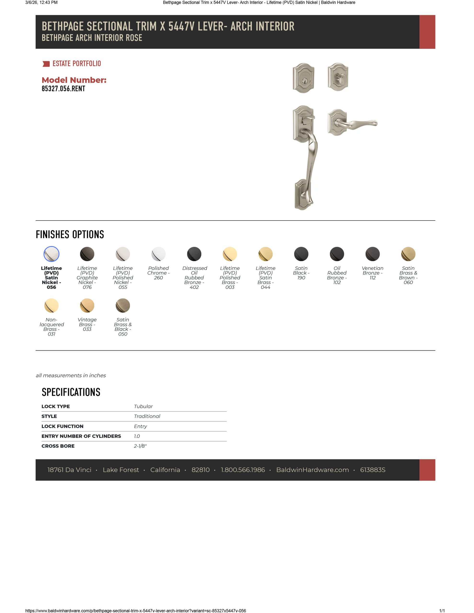 Baldwin Estate 85327 Bethpage Sectional Entrance Set with 5447V Interior Lever