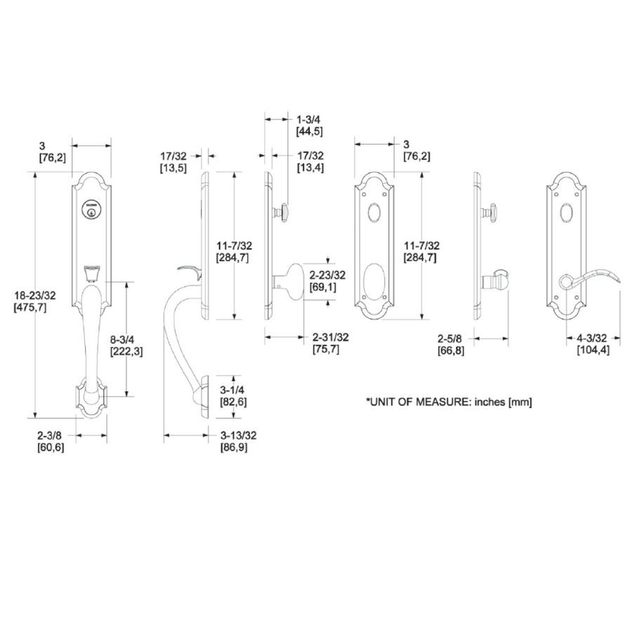 • SOLID BRASS: Entrance handle, cylinder collar, knob,