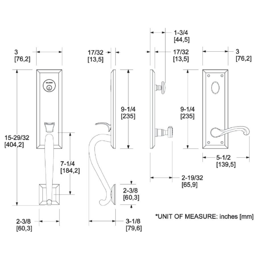 - Lock sets accommodate a door thickness of 1-3/4˝ (44mm). Conversion kits are included for 2˝ (51mm) and 2-1/4˝ (57mm) thick doors.