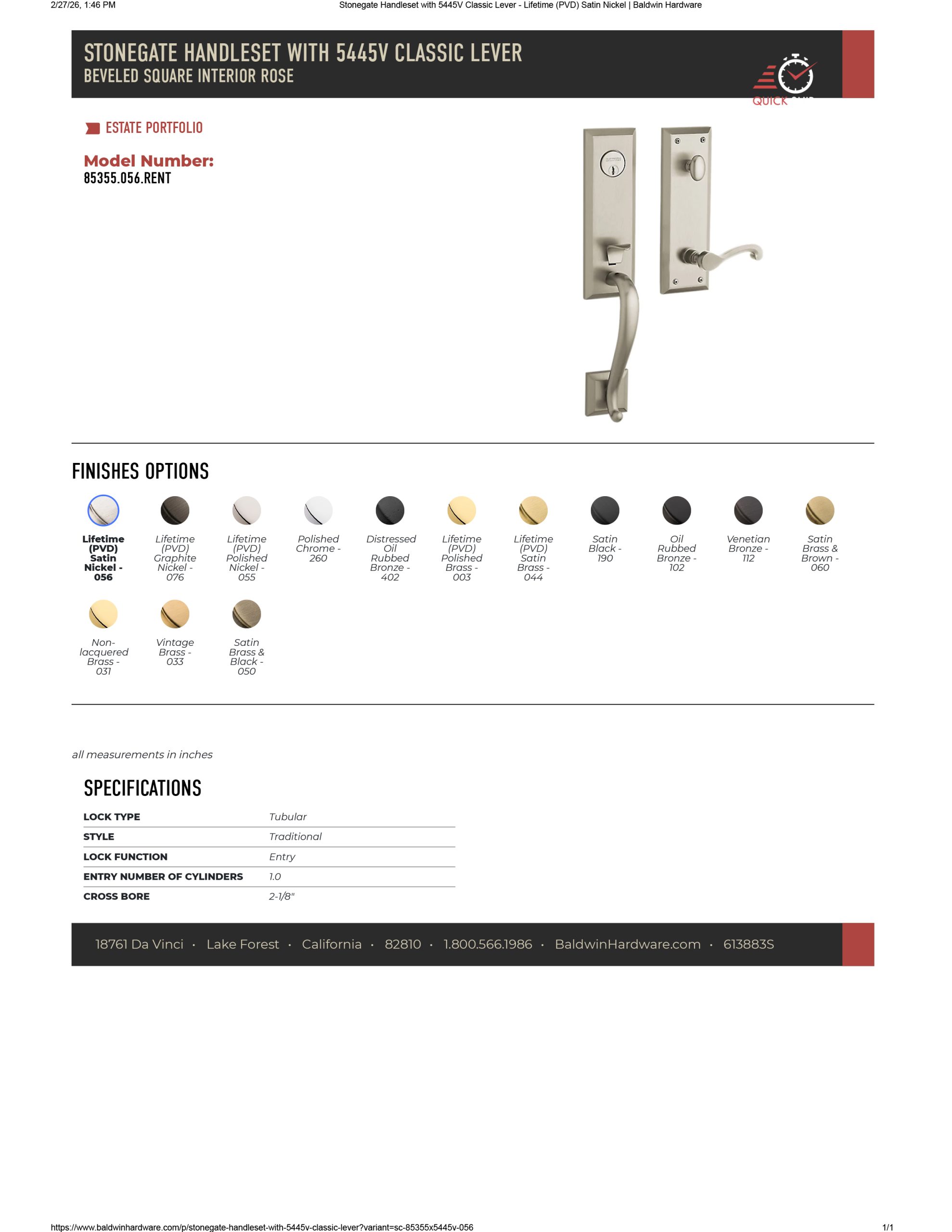 Baldwin Estate 85355 Stonegate Full Dummy Handleset with 5445V Interior Lever