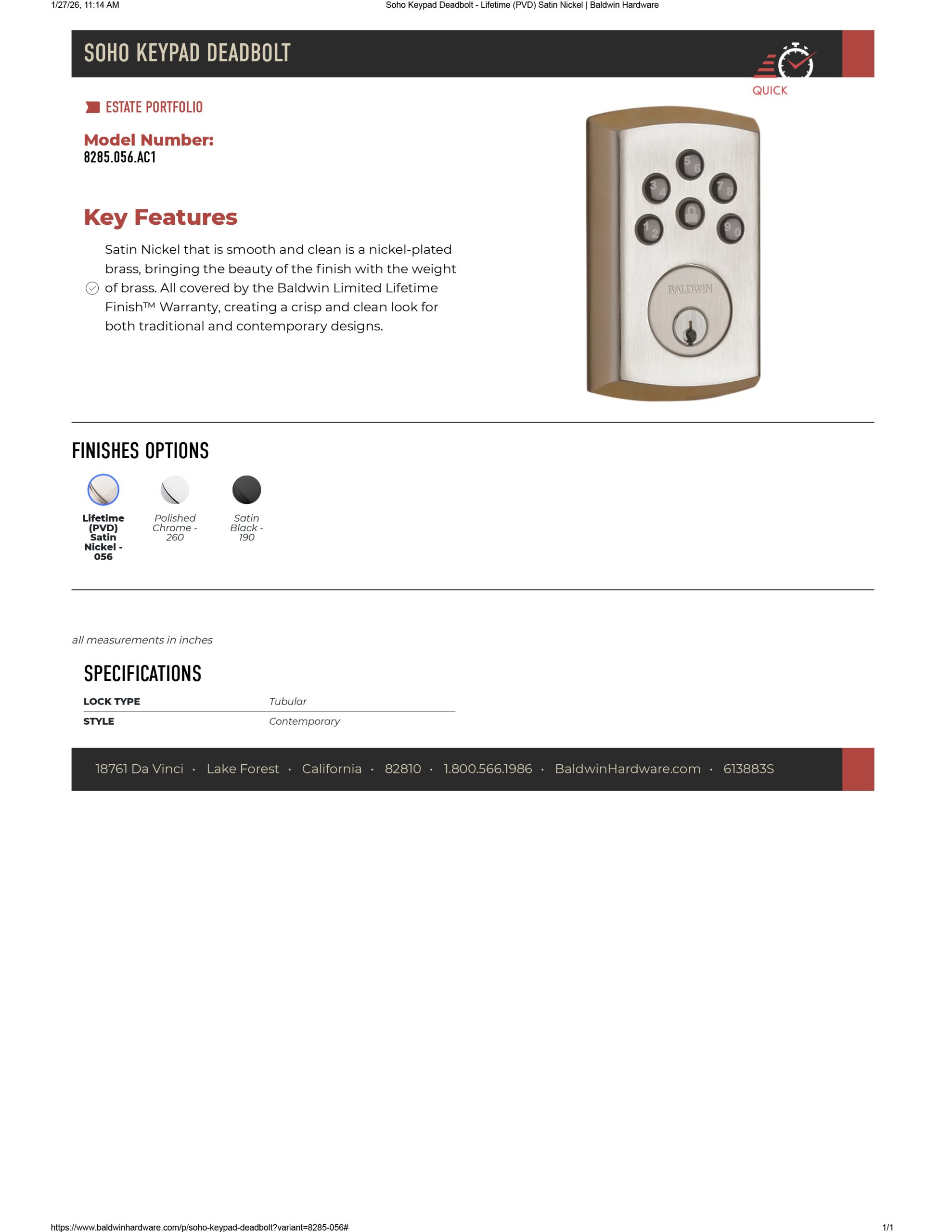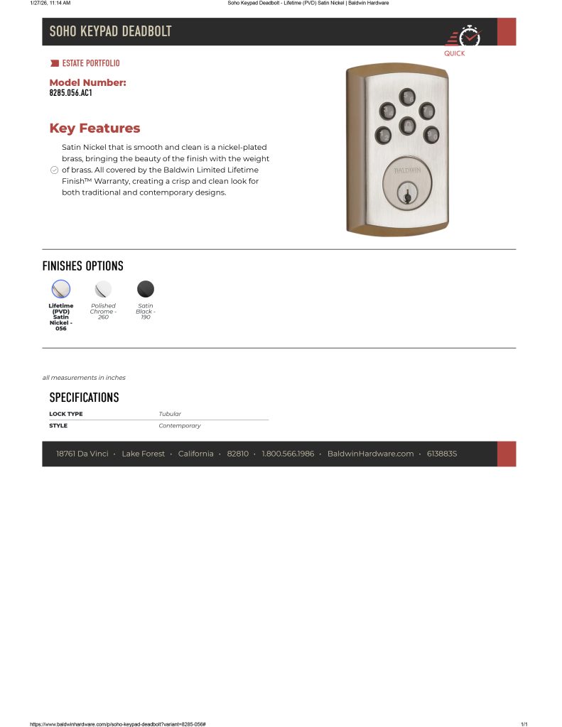 - Warranty: Keypad products comes with a lifetime mechanical and standard Estate finish warranty along with a 1 year electronic warranty to the original residential user of the product against defects in material and workmanship as long as the user occupies the residential premises upon which the product was originally installed.