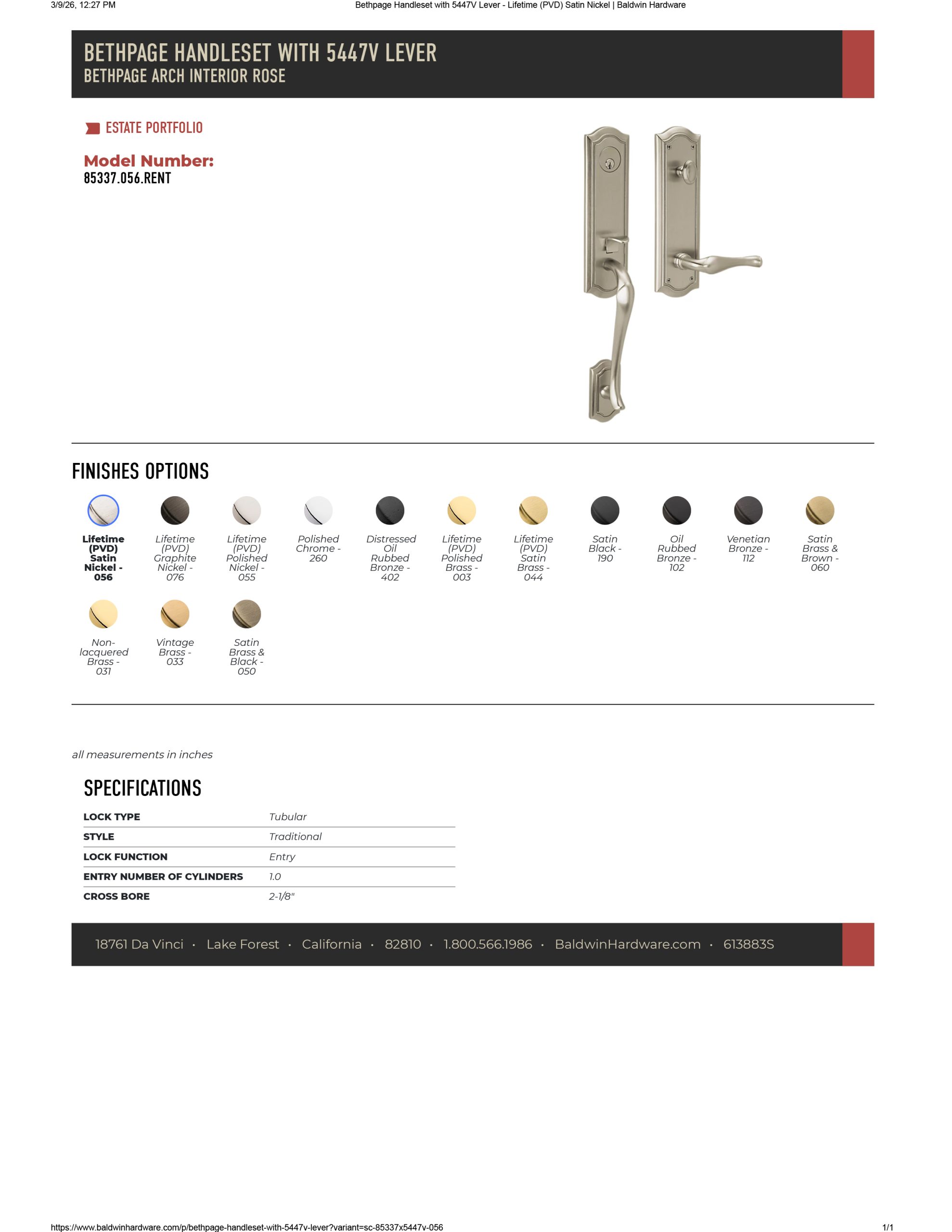 Finish – 003 Lifetime Polished Brass, Finish – 031 Non-lacquered Brass, Finish – 033 Vintage Brass, Finish – 044 Lifetime Satin Brass, Finish – 050 Satin Brass & Black, Finish – 055 Lifetime Polished Nickel, Finish – 056 Lifetime Satin Nickel, Finish – 060 Satin Brass & Brown, Finish – 102 Oil Rubbed Bronze, Finish – 112 Venetian Bronze, Finish – 150 Satin Nickel, Finish – 190 Satin Black, Finish – 260 Polished Chrome, Finish – 264 Satin Chrome, Finish – 402 Distressed Oil Rubbed Bronze, Finish – 452 Distressed Antique Nickel