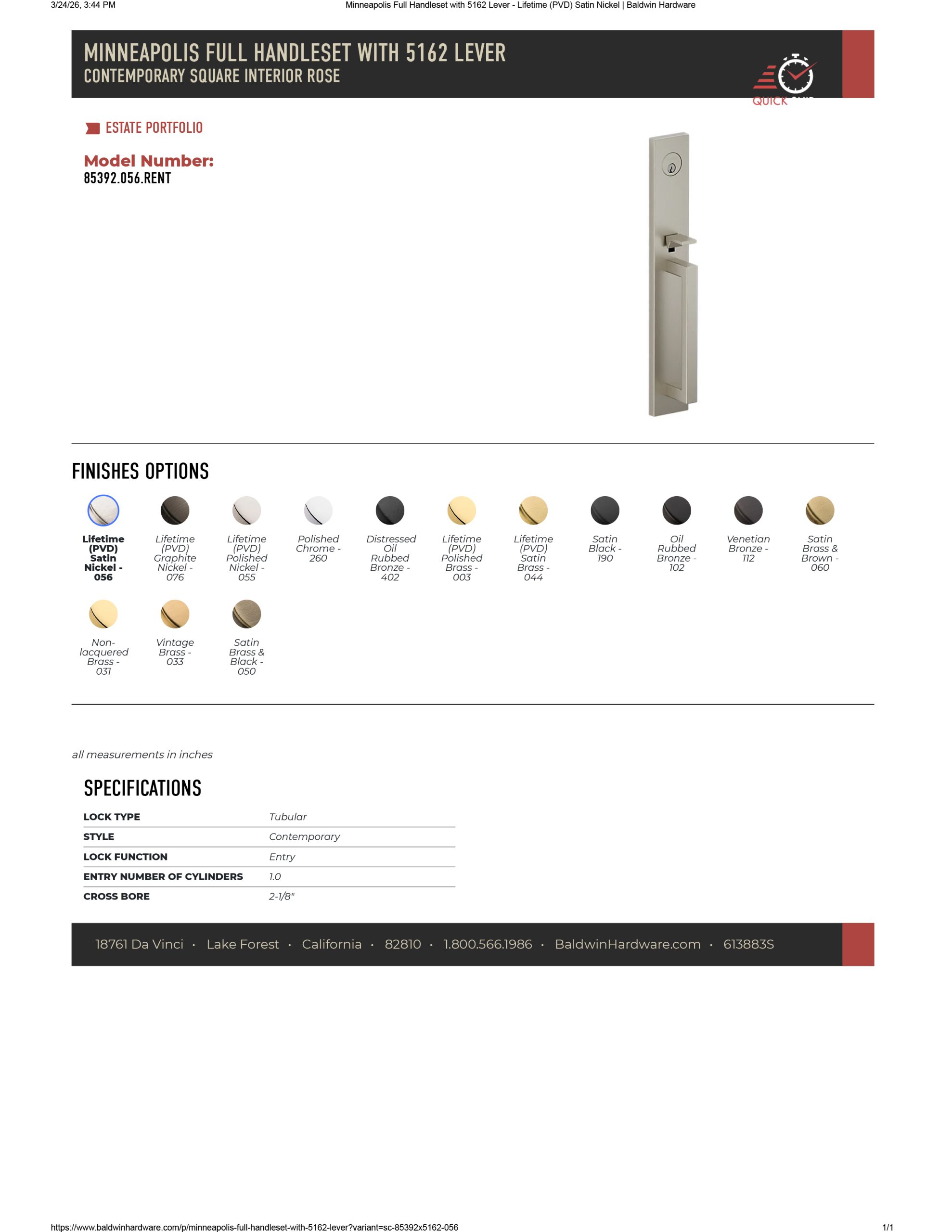 Baldwin Estate 85392 Minneapolis Full Escutcheon Full Dummy Handleset with 5162 Interior Lever