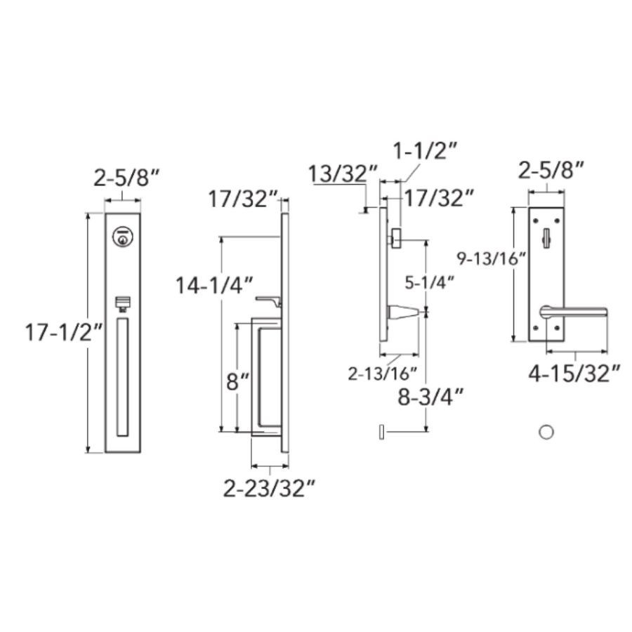 - Lock sets accommodate a door thickness of 1-3/4˝ (44mm). Conversion kits are included for 2˝ (51mm) and 2-1/4˝ (57mm) thick doors.