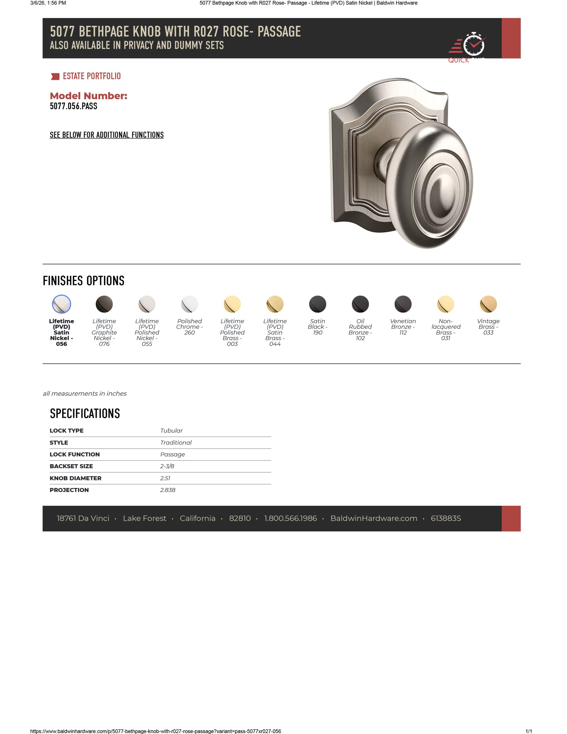 • Passage sets are fully functioning, non-locking sets typically used for hallways, closets or rooms where privacy is not desired.