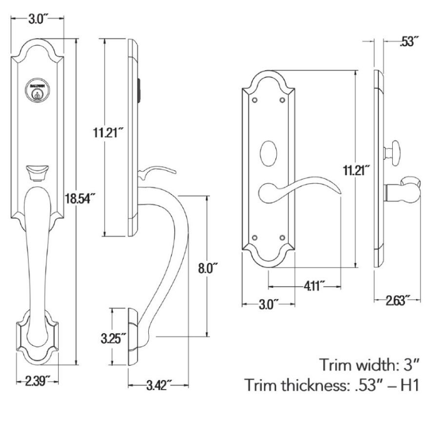 • Interior and Exterior Trim, 5452V interior lever, Mortise Lock and Cylinder (everything needed for new installation in standard 1-3/4″ thick door)