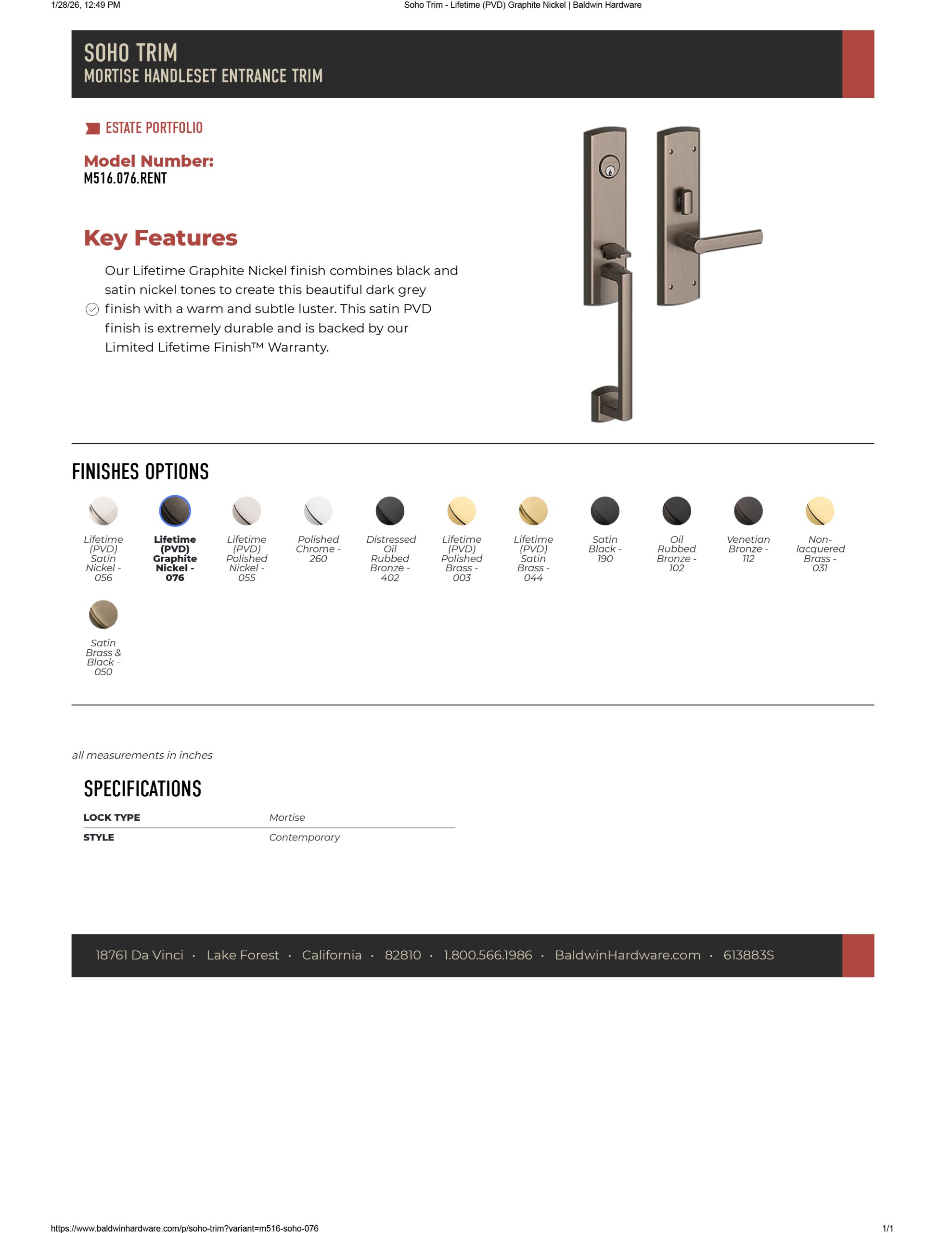 - Baldwin Estate Mortise Handlesets are a component door hardware system and each component can be purchased separately. This product has been set up to to make ordering a mortise lock easy and hassle free