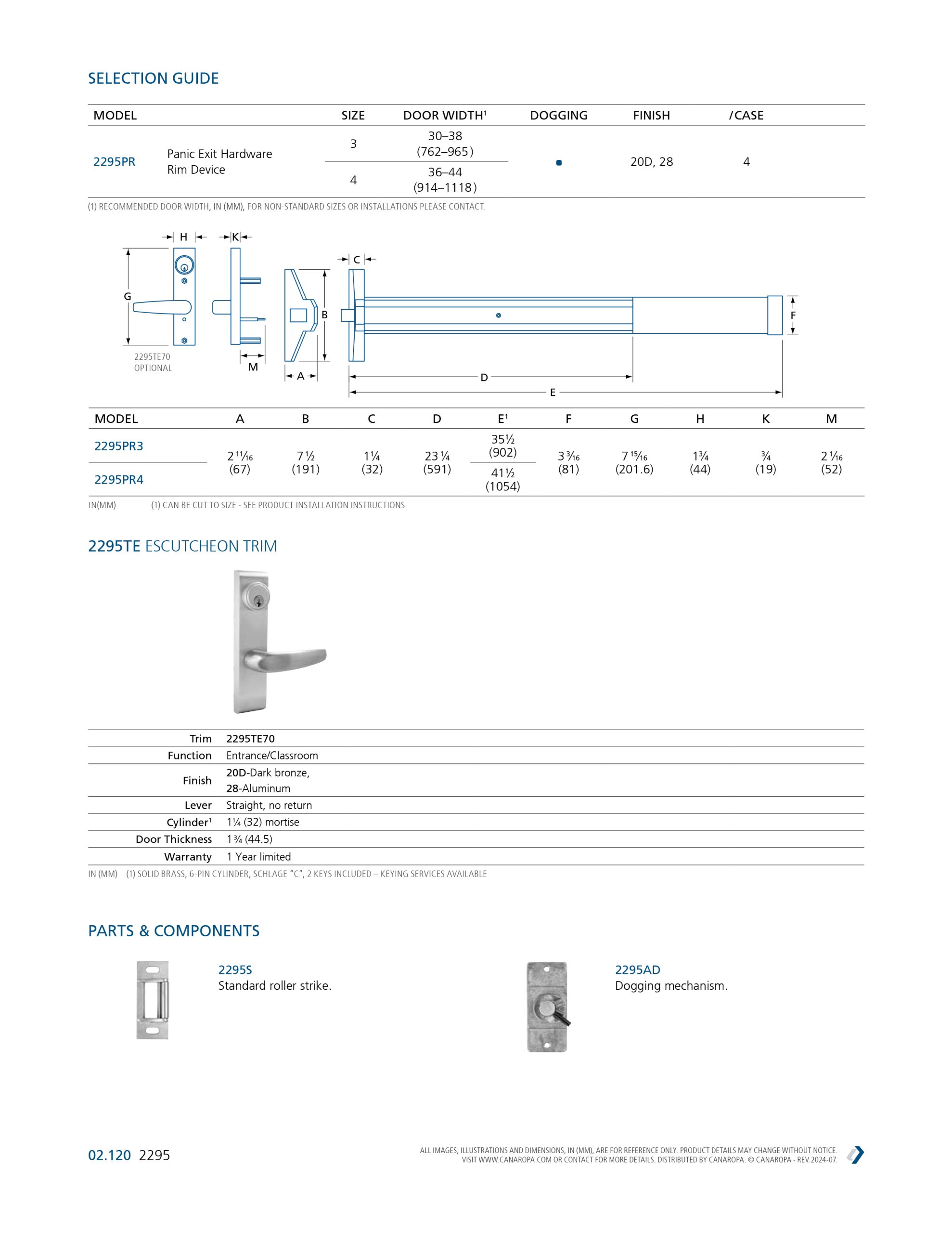 Dorex 2295TE70 Escutcheon Trim For 2295 Series Exit Device