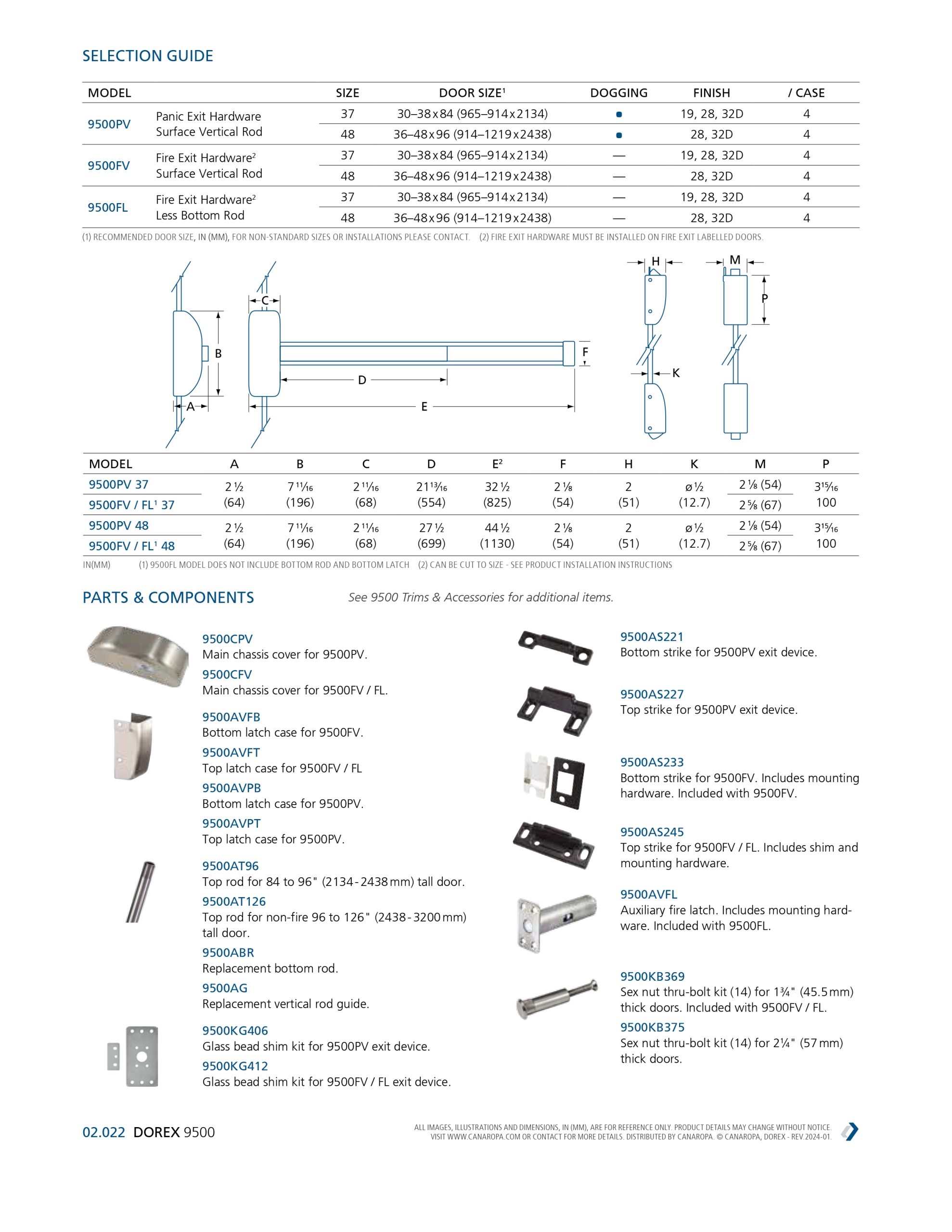 - Mortise and Concealed Vertical Rod models available²