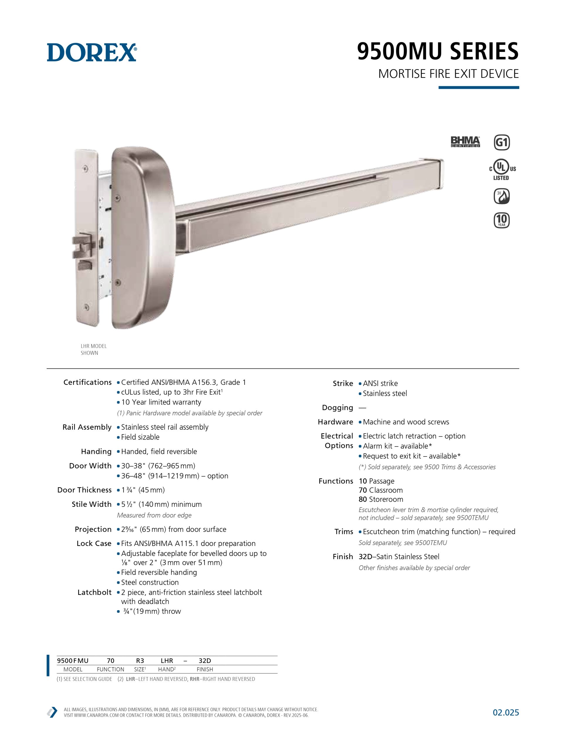 The DOREX 9500MU is a heavy duty exit device with contemporary style and exceptional performance for high traffic applications.