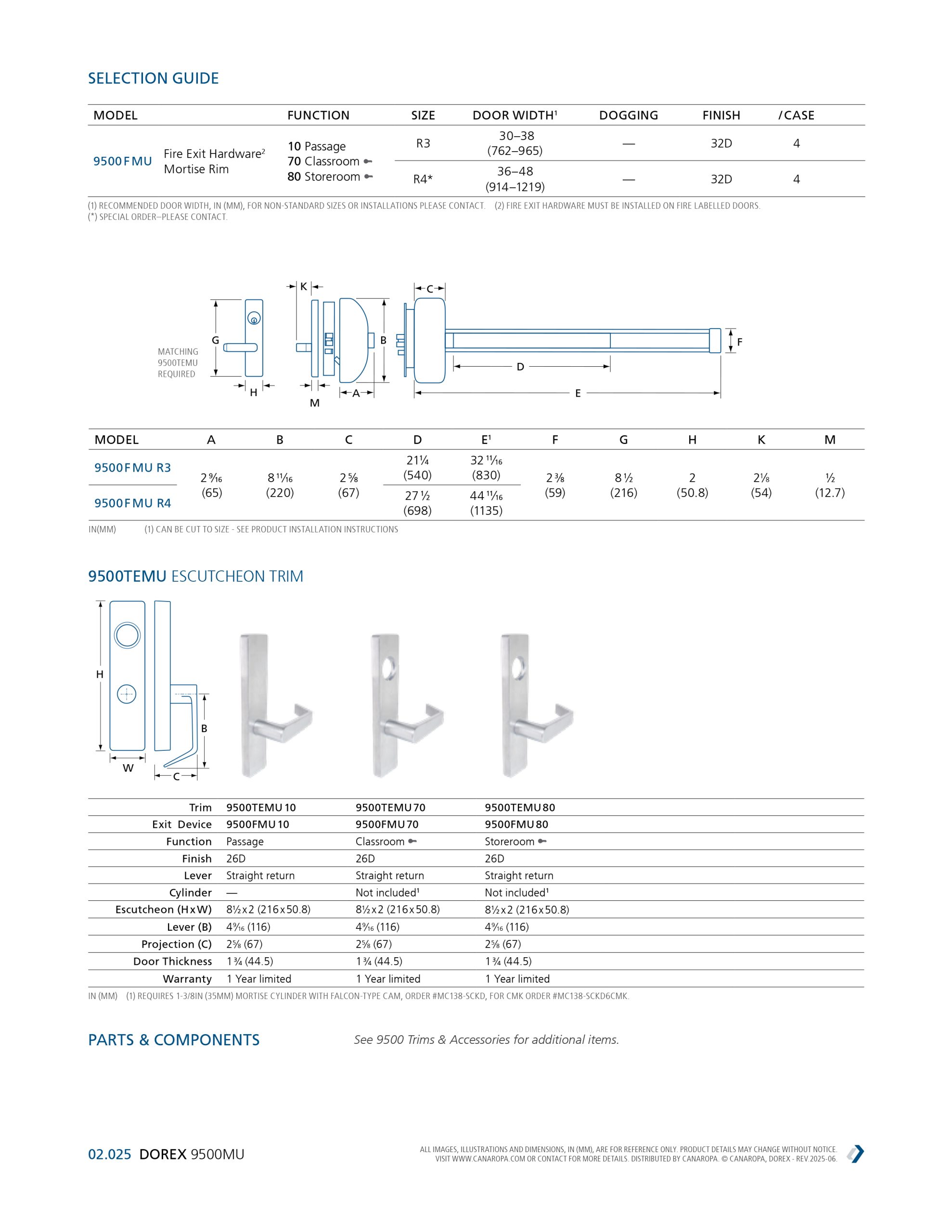 9500FMU R4Fire exit device for doors 36 to 48″ wide