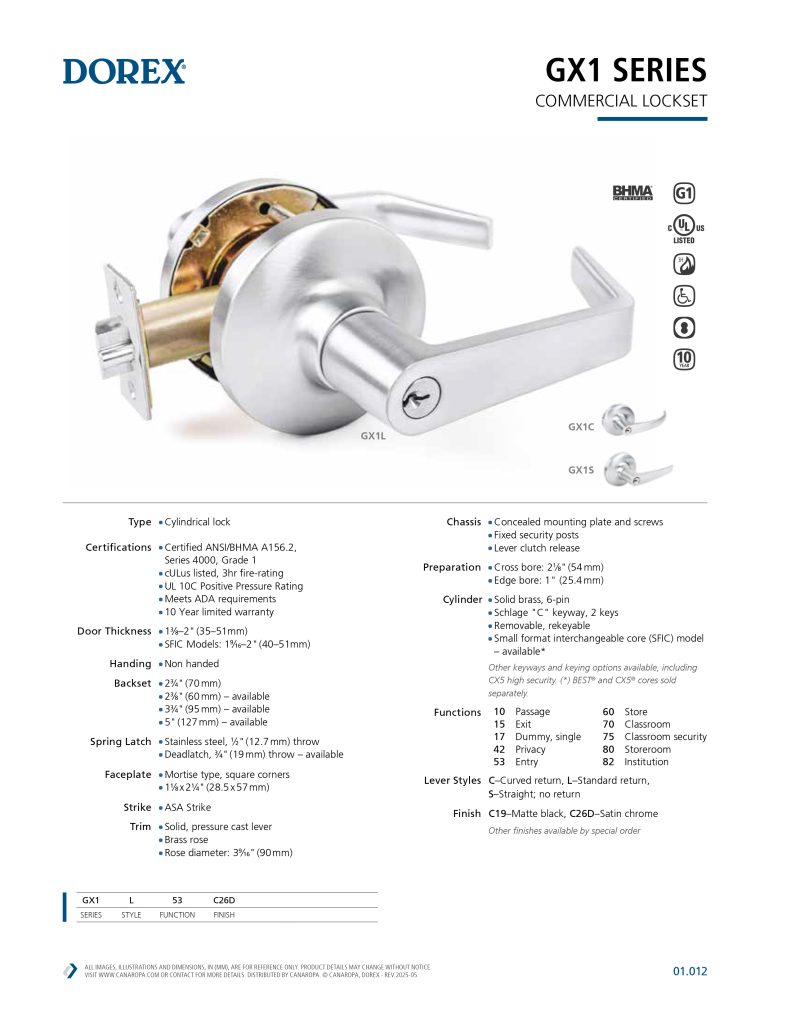 DOREX GX1L Series Grade 1 Commercial Lockset