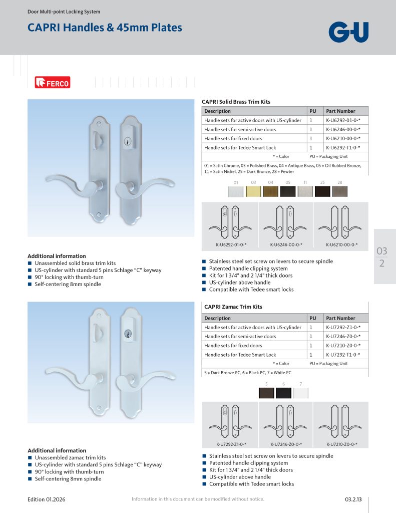 - Kit for 1 3/4″ and 2 1/4″ thick doors