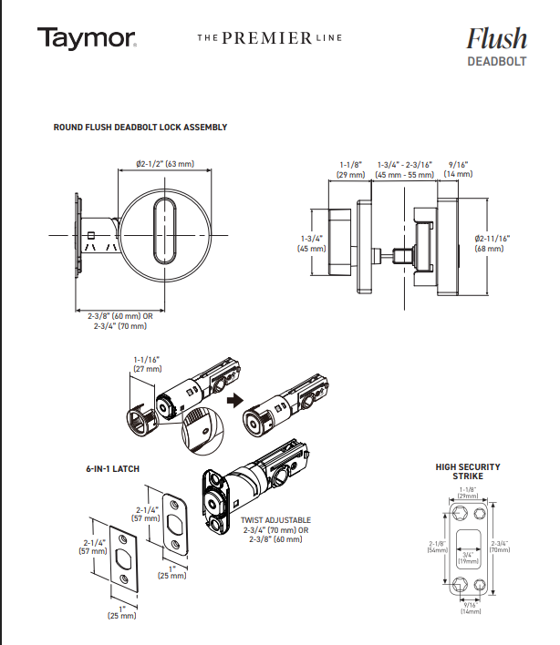 Taymor Round Flush Deadbolt The Premier Line