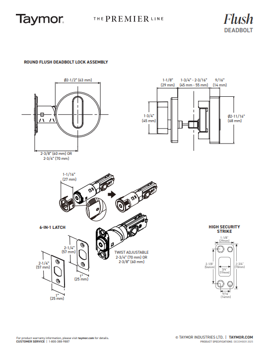 Taymor Square Flush Deadbolt The Premier Line