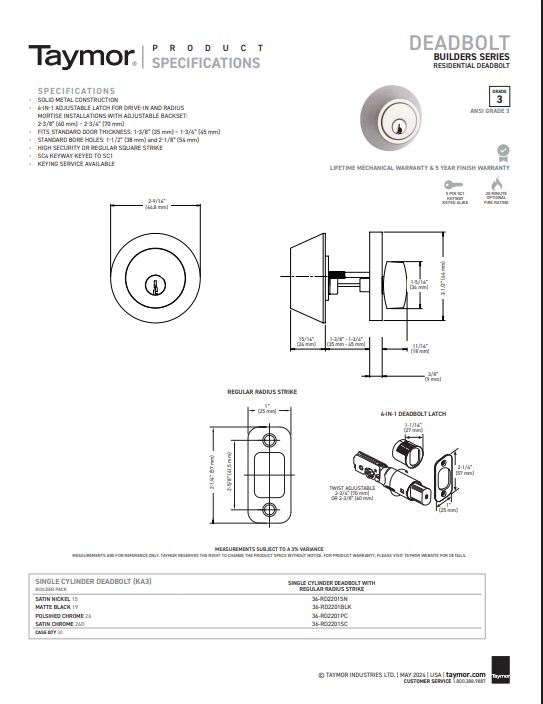 2-3/8” (60 mm) – 2-3/4” (70 mm) - FITS STANDARD DOOR THICKNESS: 1-3/8” (35 mm) – 1-3/4” (45 mm